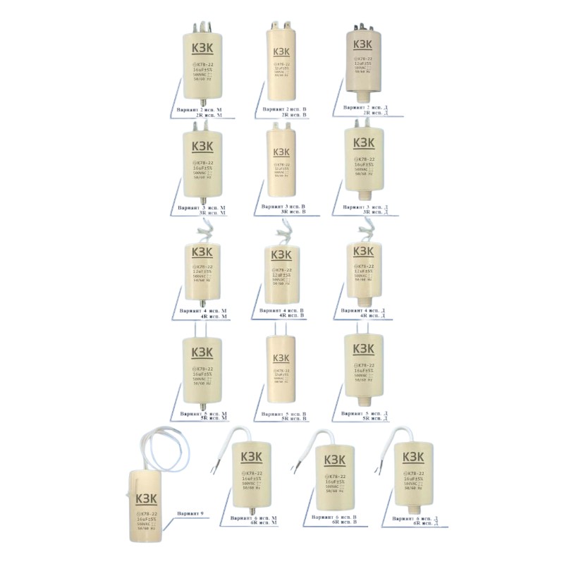 К78-22 изготавливаются в 32 вариантах и исполнениях: